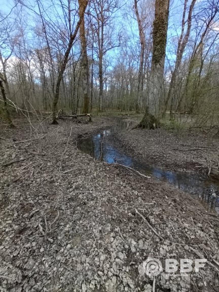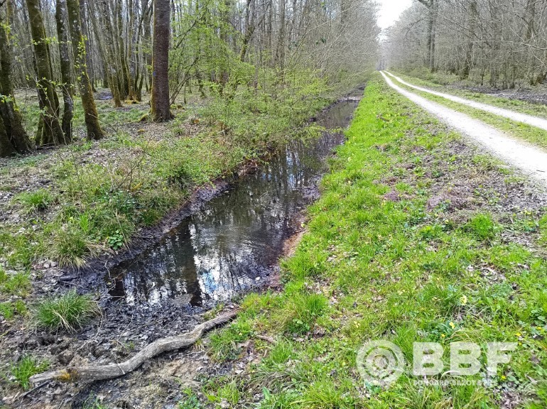 - Supprimer les drains à l’échelle du bassin versant, en neutralisant ainsi 50 km de fossés drainants (2 550 fossés neutralisés, soit environ 2 300 bouchons), et en implantant 1600 redents (obstacles perpendiculaires aux écoulements) le long de 24 km de voiries forestières.