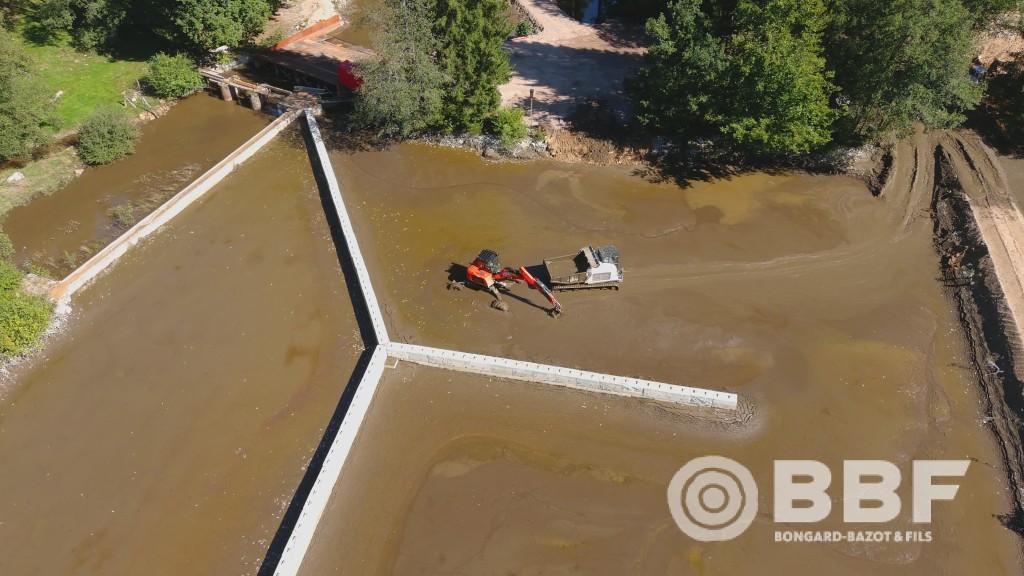 Évacuation des sédiments stockés dans les bassins vers une zone amont – 1000m3
